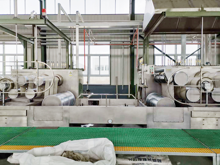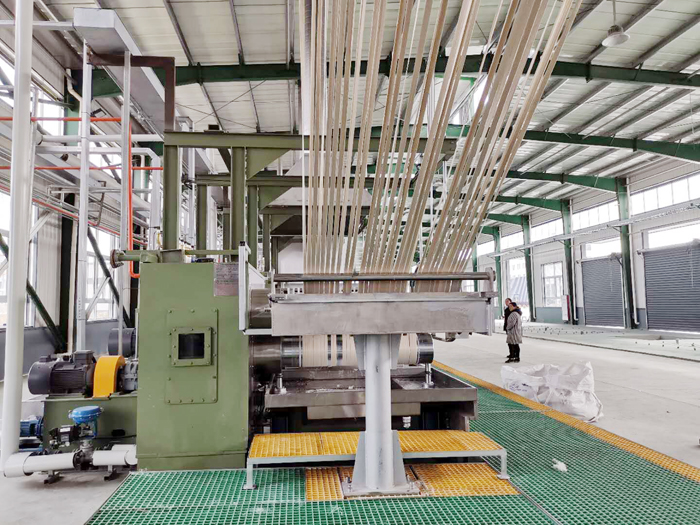 化纖生產(chǎn)是長流程連續(xù)化生產(chǎn),一般要求一年內(nèi)無故障連續(xù)運(yùn)轉(zhuǎn)8000h以上,即化纖設(shè)備運(yùn)轉(zhuǎn)的可靠性要求高于一般紡織機(jī)械設(shè)備?;w一般分為人造纖維和合成纖維兩大類。我國化纖以合成纖維為主,而合成纖維中又以滌綸纖維為重點發(fā)展,其生產(chǎn)規(guī)模越來越大,年產(chǎn)3萬噸至10萬噸的滌綸短纖維生產(chǎn)設(shè)備已趨成熟。本文以年產(chǎn)3萬噸滌綸短纖維生產(chǎn)設(shè)備為例。滌綸短纖維生產(chǎn)設(shè)備包括紡織聯(lián)合機(jī)和后處理聯(lián)合機(jī)。